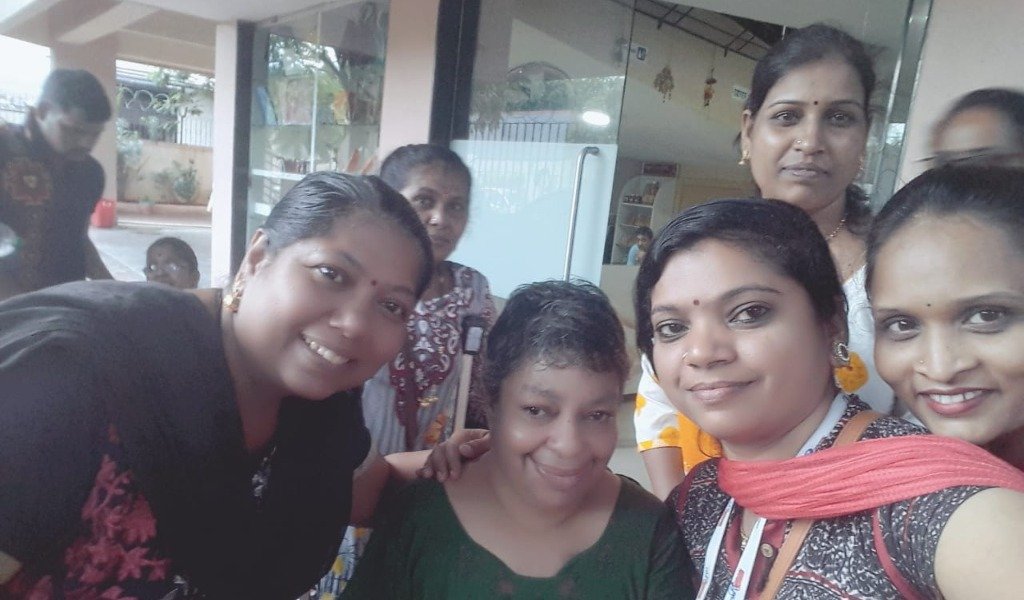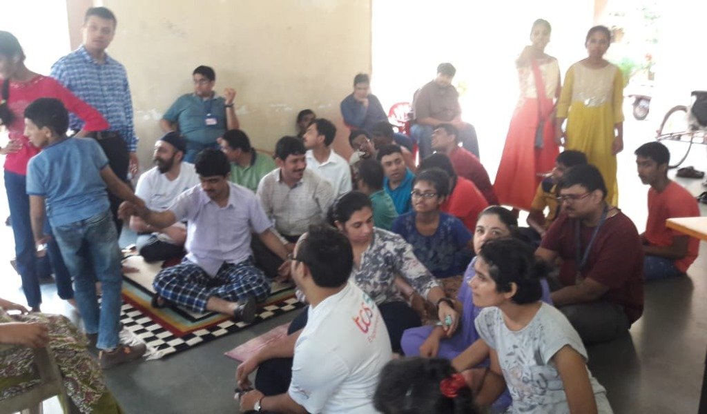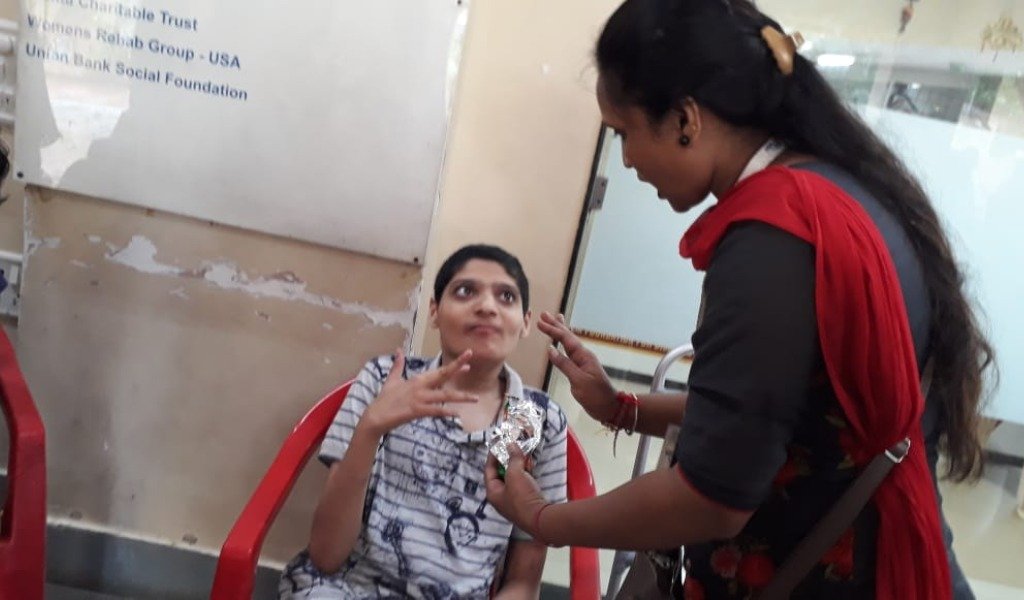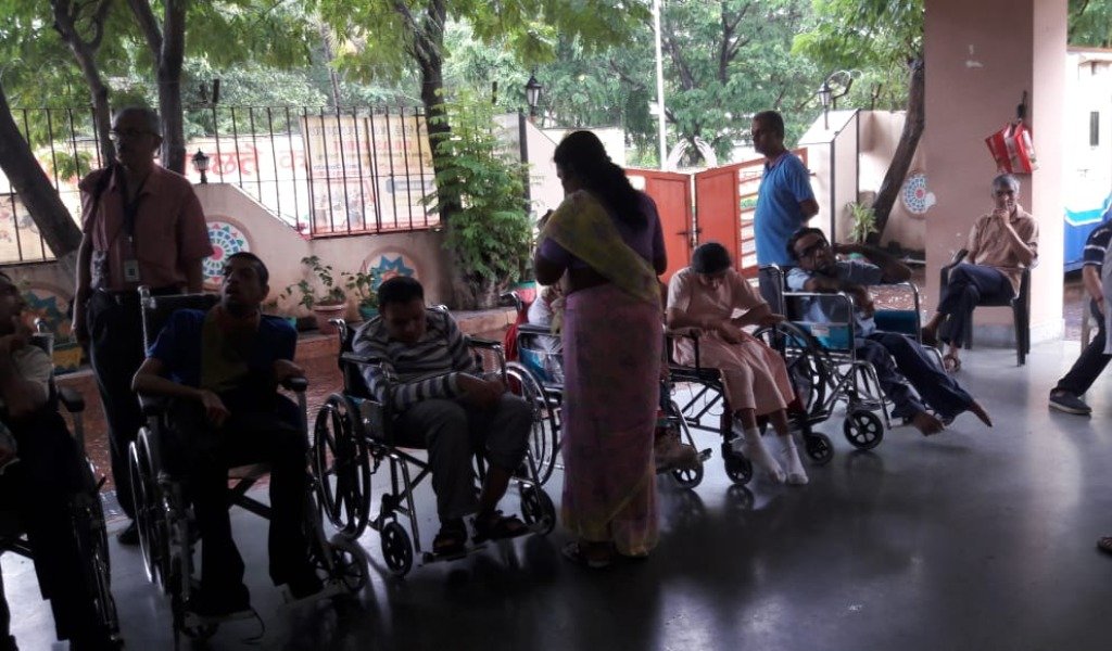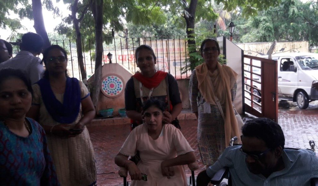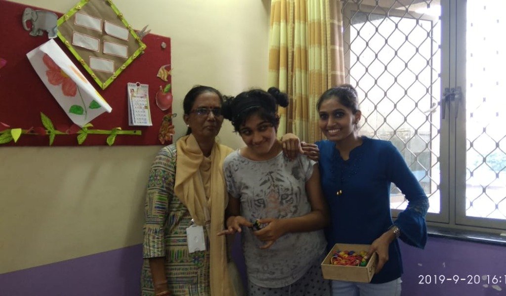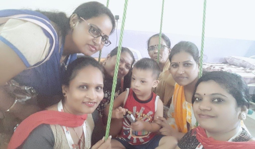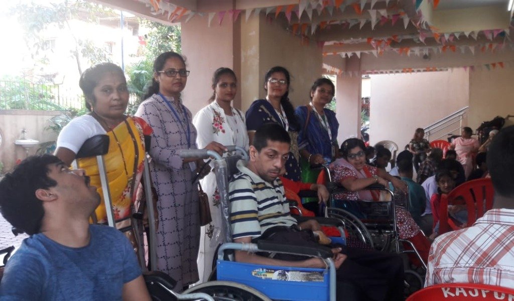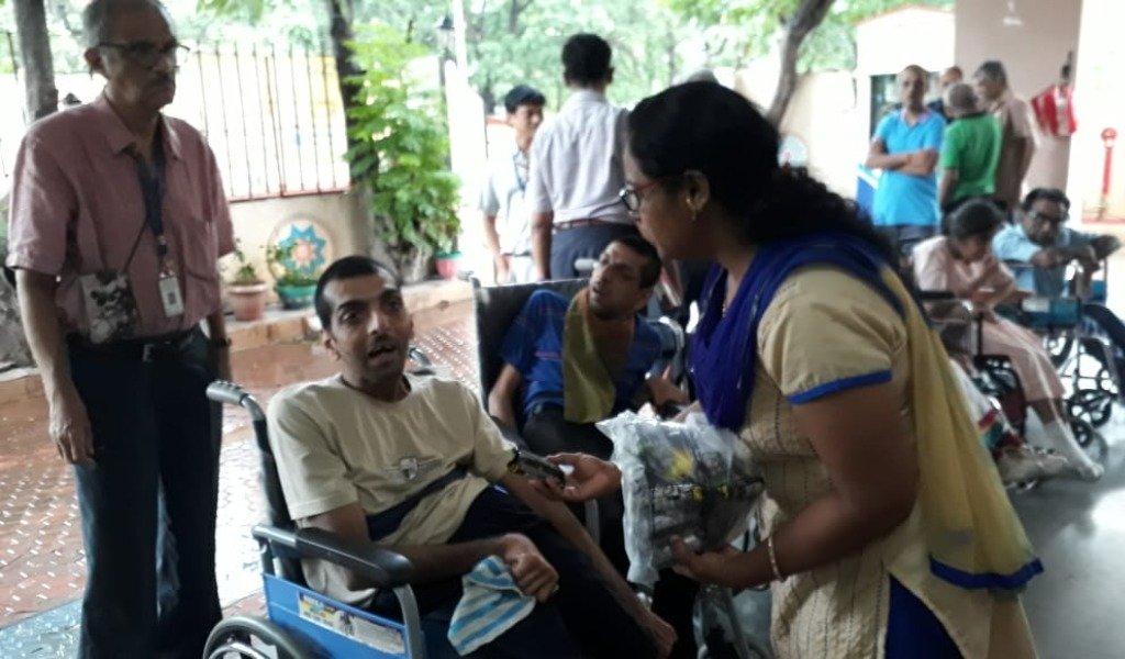 अपंग मुलांना खाऊ वाटप करताना